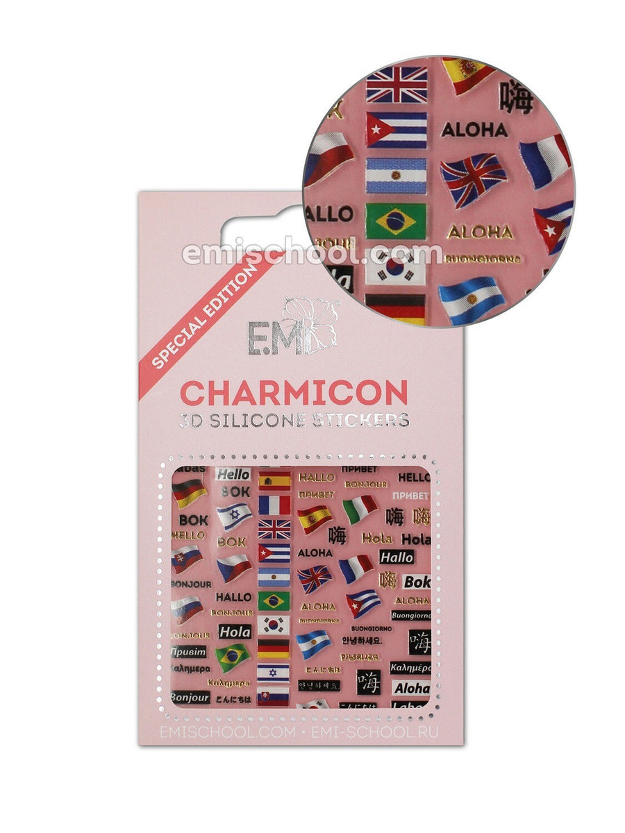 Charmicon 3D Silicone Stickers Flags/Hello